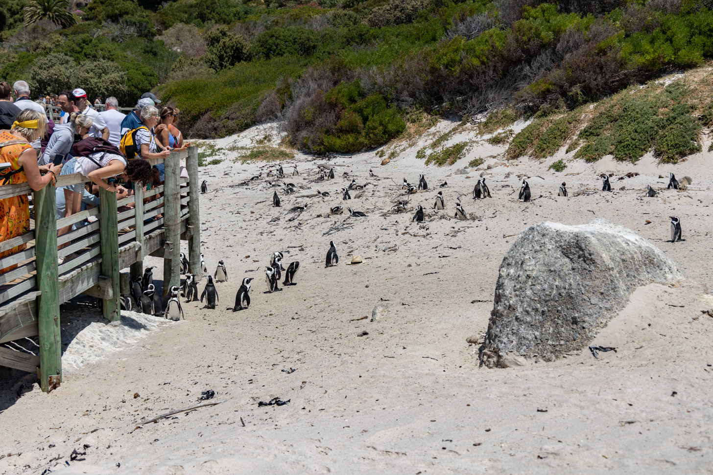 Tijdens mijn vorige reis richting Kaapstad heb ik twee keer een bezoek gebracht aan Boulders Beach. Dit is het bekende strand waar een kolonie pinguïns decennia geleden neergestreken is. Deze geweldige vogels vormen een belangrijke bezienswaardigheid waar dagelijks vrij grote aantallen toeristen op af komen. Gelukkig gebeurt dit op een manier dat de dieren er weinig tot geen hinder van ondervinden. Vanaf twee platformen kun je op gepaste afstand de pinguïns van Boulders Beach observeren.