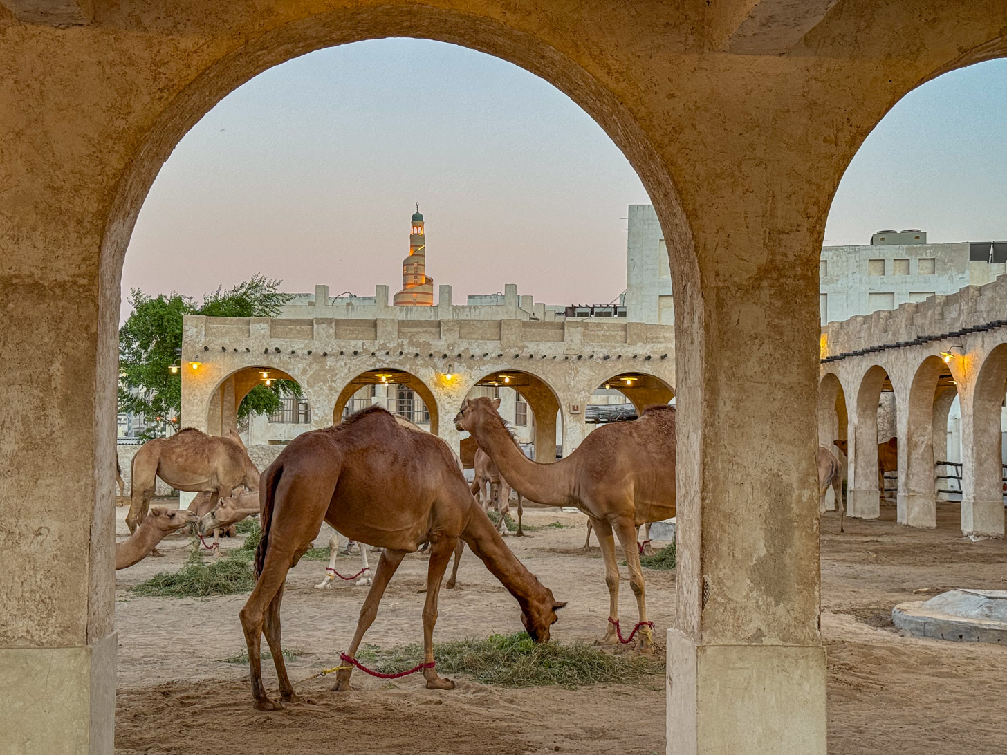 Kamelen komen nog steeds in het straatbeeld van Qatar voor.