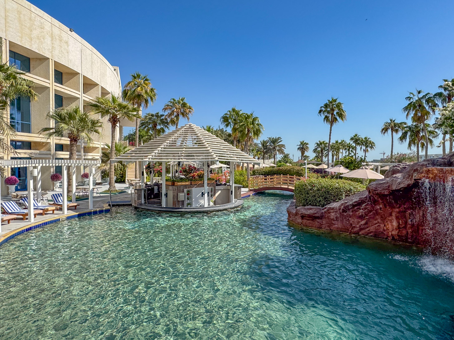 Het heerlijke zwembad van het Ritz-Carlton hotel. Het zwembad wordt in de zomer gekoeld en in de wintermaanden verwarmd, zodat het altijd lekker aanvoelt.